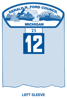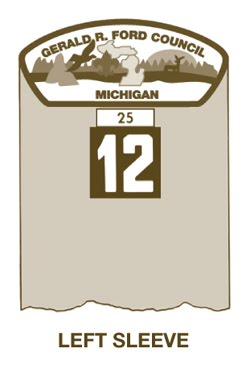 The World Crest emblem is worn by all youth and adult leaders. The 1-1/2" diameter badge is white on a violet background.
